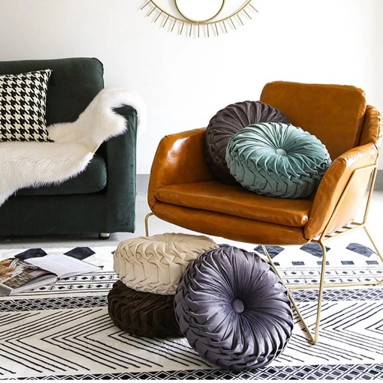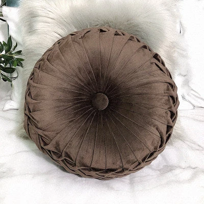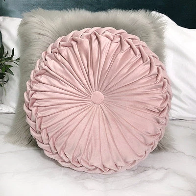 Accent your home with these beautiful Round Pleated Vintage Style Cushion! Layered with other throw pillows on your sofa or on its own on your favorite chair. It’s hand-crafted and is perfect if you want to add a bit of luxe to your living space. Come with a cotton insert and available in a range of gorgeous colors. Get one for every room!