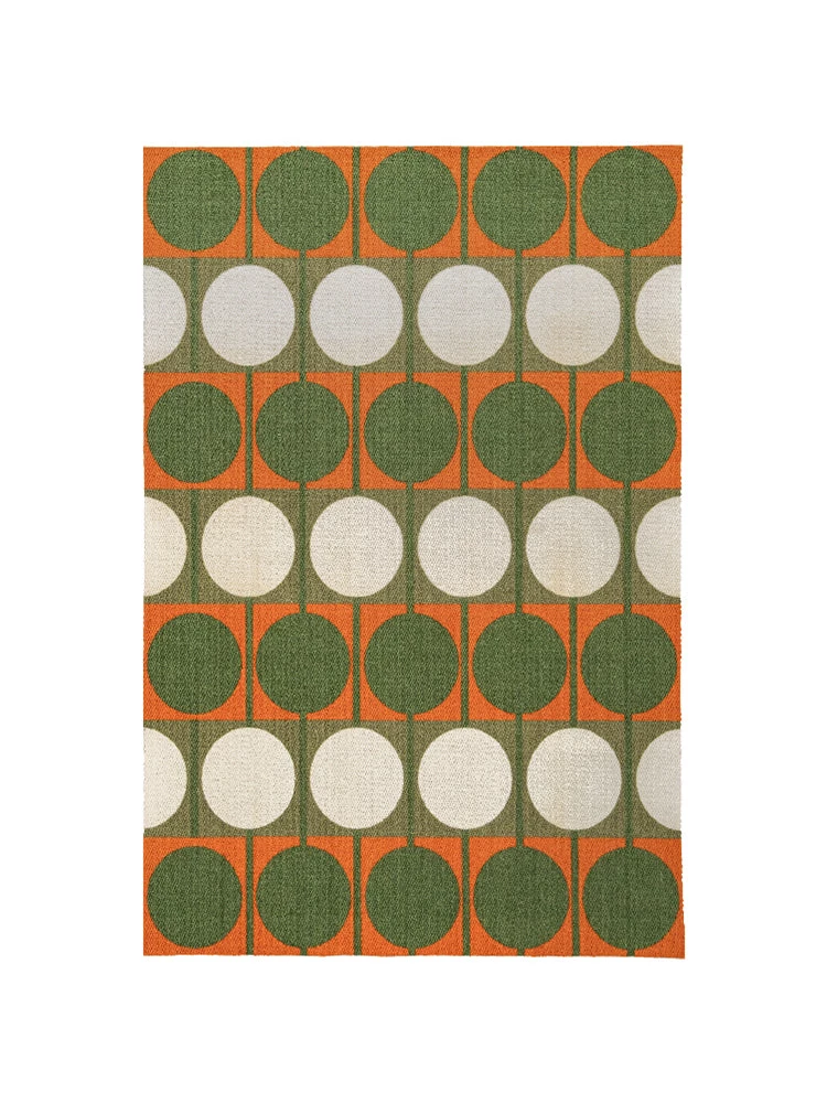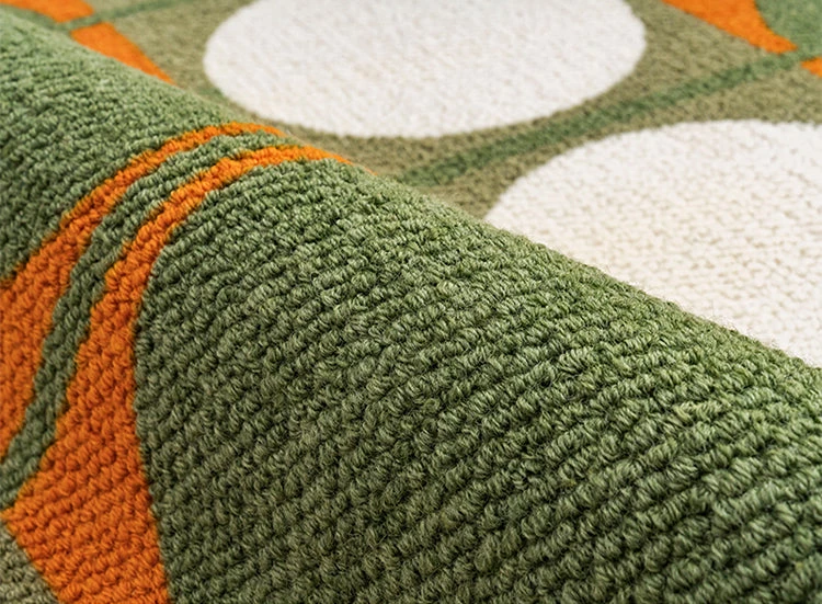 The Austin Retro Circle Green and Orange Wool Rug’s artful and retro design will add a splash of colour to any room. This rug is hand tufted with the best wool and rayon materials. This beautiful rug will bring life to any home in any modern decor, with a color scheme inspired by the 1970s.