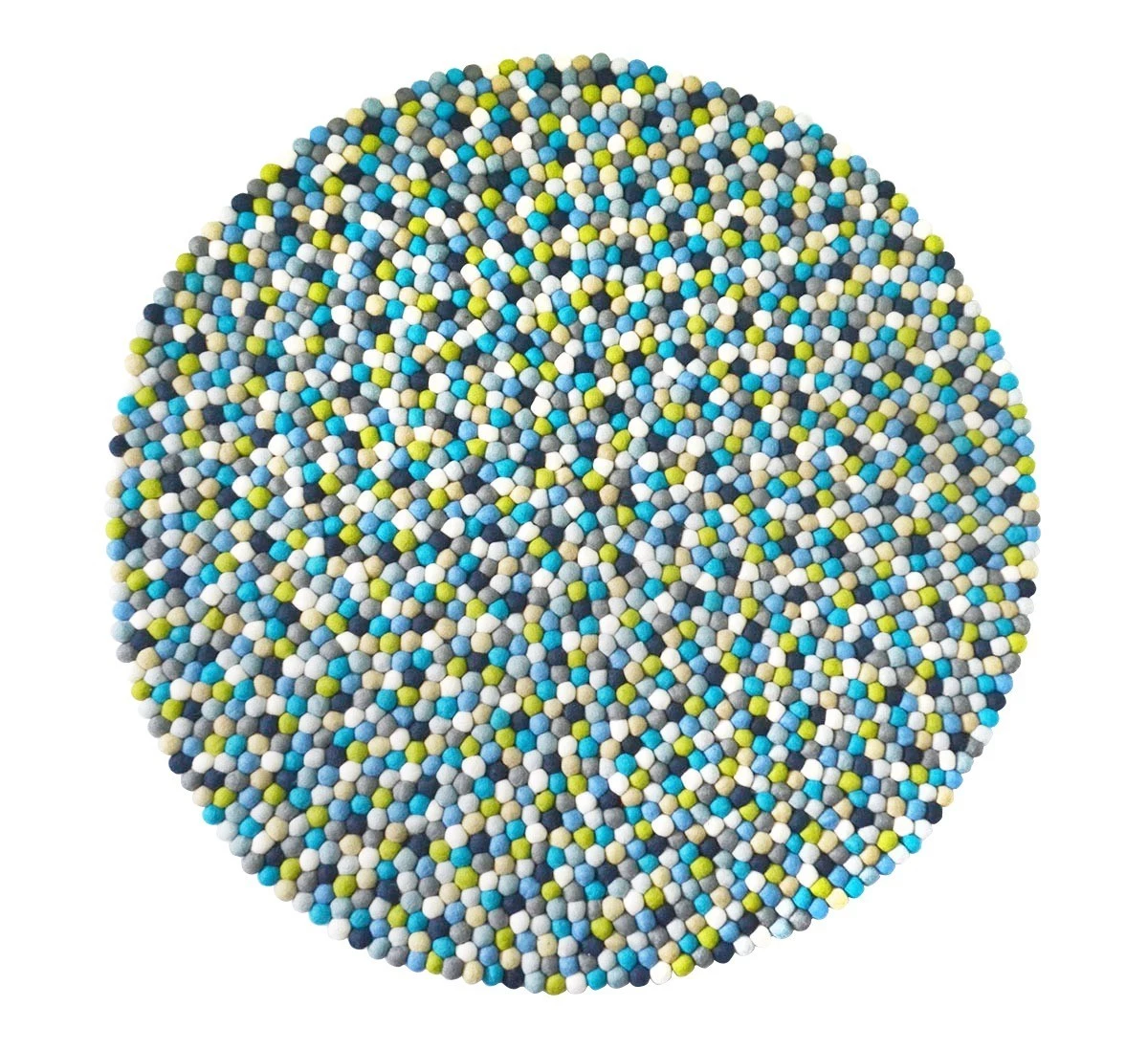 Add some colour to your home with this beautiful felt ball rug in blue and green. Felt is a natural fabric made from wool, animal hair or fibres. This rug is hand made in Nepal by Fair Trade producers using natural materials. A great choice for the kids room and available in a range of sizes.