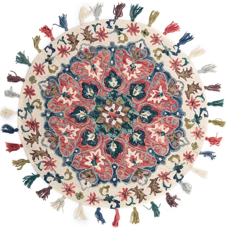 This beautiful modern ethic rug was a surprise find. It’s hard to find round rugs, period, let alone such a beautiful piece. It achieves bright bursts of colour but somehow without being over bearing. It would make a beautiful statement piece for a dining or lounge area. We see it working well with eclectic and bohemian style interiors. It’s available in three sizes and comes with Free Delivery.