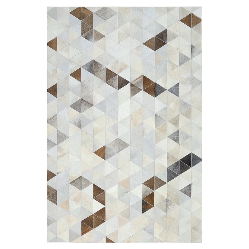 Patchwork hide rugs are great, and this piece is particularly unique. Constructed from triangular patches of cream, fawn and brown, the pattern gives it lovely visual texture that’s bound to bring style and interest to any room. It has a contemporary look that we see working well with Eclectic interiors. Hand made from natural cowhide leather, each piece is unique. It’s available in three standard sizes and the price includes Free Delivery in Hong Kong.