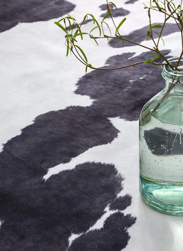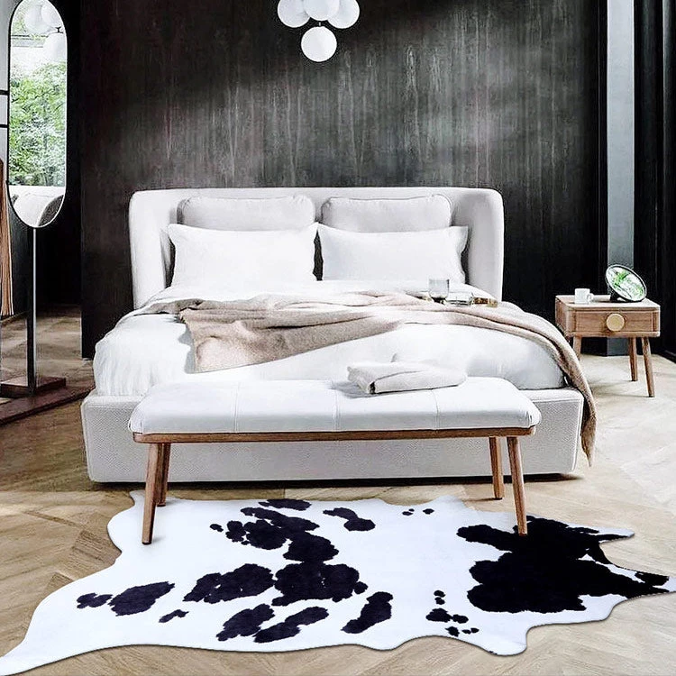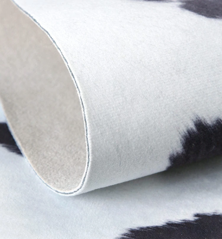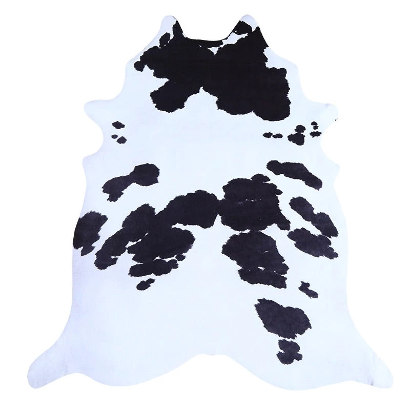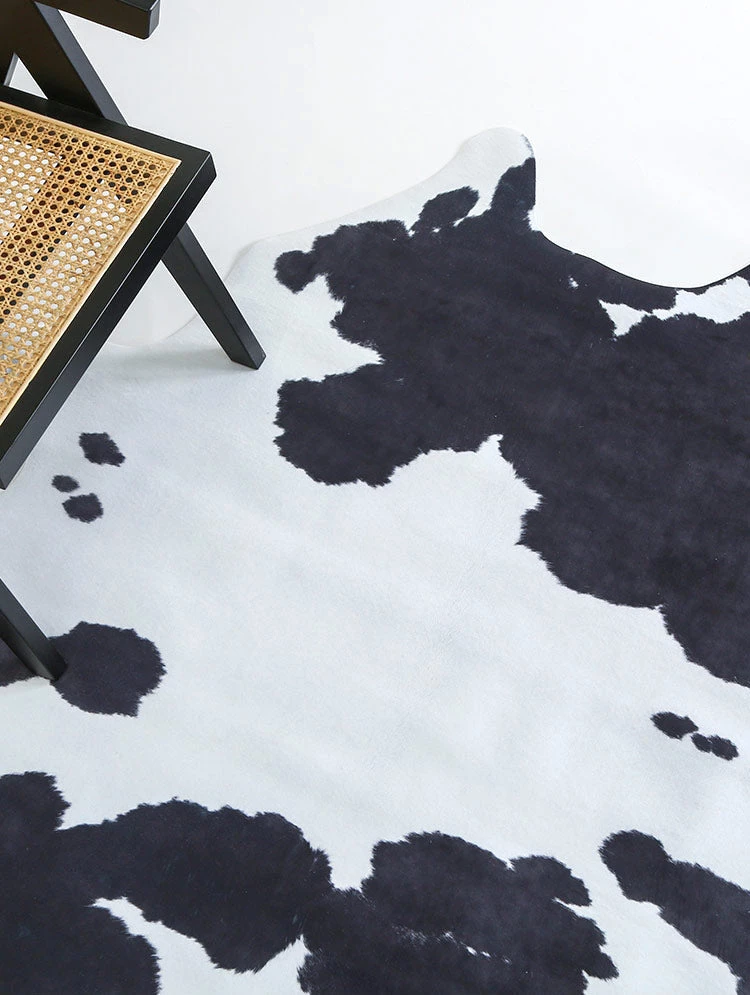 Let Premium White with Black Spots Faux Cowhide Rug add more life to your home. Made from 100% polyester with an anti-slip suede backing, with a thermal printed technology, this decorative rug resembles the natural markings of a hide that can bring a dose of personality to any room. If your sitting area, dining room, bedroom, or reading area is starting to feel bland or look too simple, instantly infuse character through this eco-friendly faux cowhide rug. You can place this faux cowhide rug under a clear glass coffee table, a small pouf, or a low-profile armchair. Available in two sizes.
