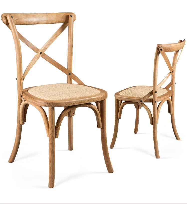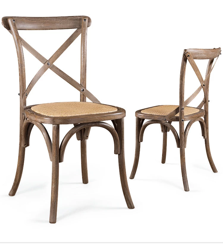 The cross-back country chair has a lovely organic feel to it. Soft curves of oak wood in a weathered vintage finish and rattan seat conspire to add charm and character to any living room. The light colour makes it an easy match with eclectic interiors or even to soften a modern look. Great as dining chair or solo in the bedroom or entrance hall.