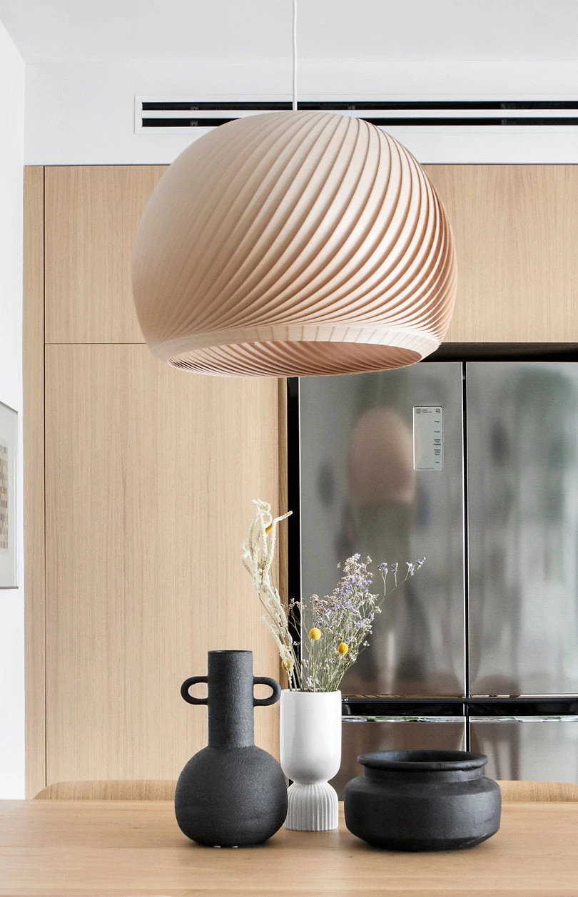 Brighten your living space with this beautiful art piece! This gorgeous ceiling light is the work of Israeli designers Katharina Brand and Tzuri Gottlieb, under their lighting brand, Studio Vayehi. We love their description of this light as – “like stems of wheat in a field, bending to a gentle breeze.” So poetic! Handmade from wood veneer, it’s available in four sizes and three wood finishes: maple, bamboo and walnut.