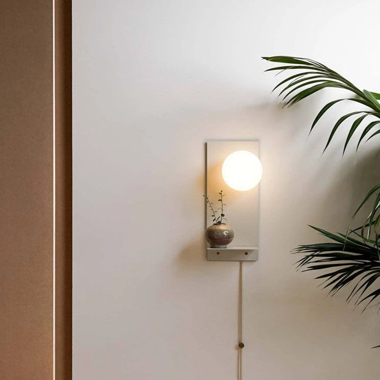 - Features:Â Sturdy wall shelf for books or decorative objects, foot switch with flex cord and plug option