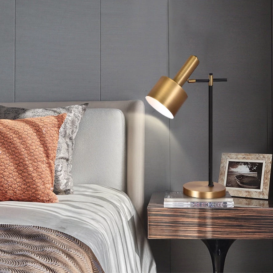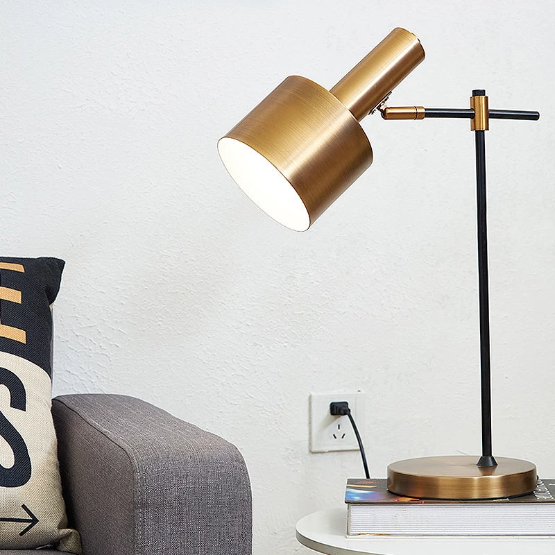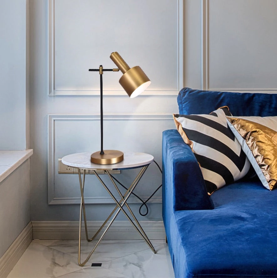 An ideal addition to your nightstand or home office workstation, the Vera Modern Black and Gold Desk Lamp provides not just illumination but also an ample amount of style. This light source displays a refined silhouette with a gold-finished shade and base and a sleek black metal body. Beyond practical, this lamp will shine light and sophistication to wherever it is placed. This lamp includes an E27 LED bulb. You have the option to choose between two power sockets.