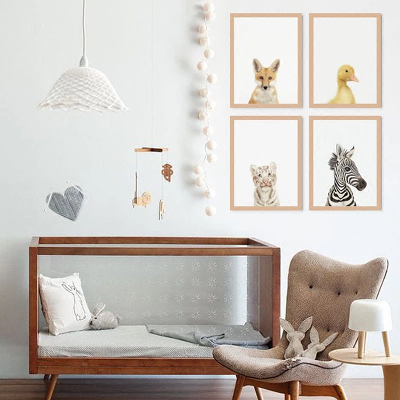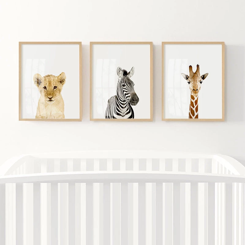 Kids rooms are often super-colourful, and these animal canvas prints provide a nice contrast. We recommend mounting them on a simple white frame for a clean look.  They look great individually on a smaller wall, or grouped together in multiples on a larger wall. Available in nine different styles and four different sizes.