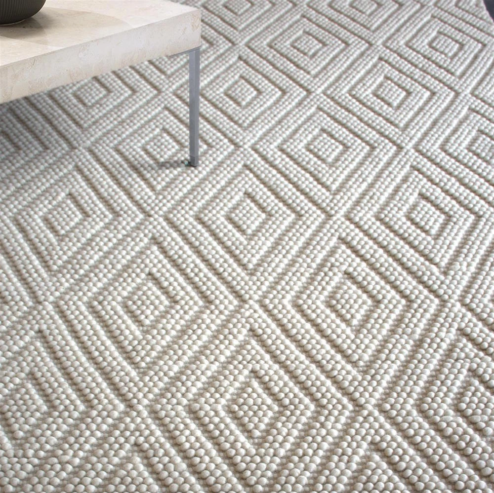 The Yebishu Cream White Rug has beautiful concentric diamond patterns on it along with a great texture. It is hand woven with felt wool and has a natural color. There are no artificial dyes used. It is masterfully woven with intricate workmanship that adds warmth to your home. It has good durability and looks fabulous when used in the living room area or study room. Regularly make use of a soft brush or light vacuum to keep it clean. There are three available sizes of this rug, which are shipped worldwide with no shipping charges.