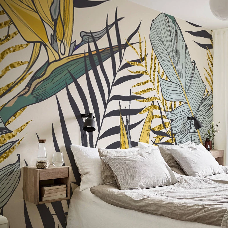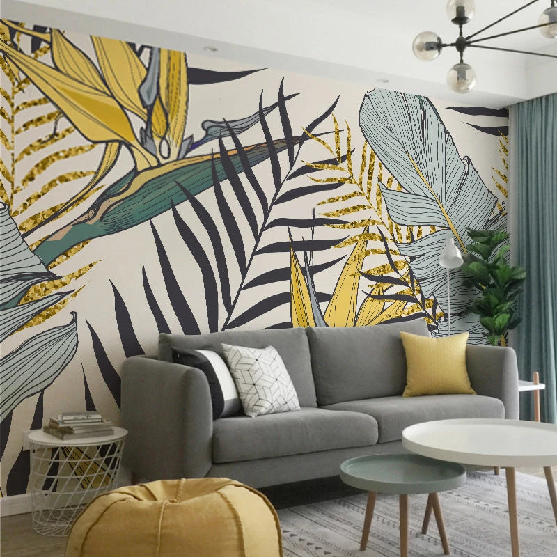 We love the audacity of this vibrant yellow and blue wallpaper. It’s the perfect antidote for a room that needs some color and life. Nature inspired patterns like leaves are very popular now and this would make a great feature wall for a living room. Yellow works well with blues and greys, and we see this working well with light, bright modern interiors. Working out how much you need and ordering is easy – follow our simple instructions below, and we’ll custom size to your wall and ship it for free worldwide.